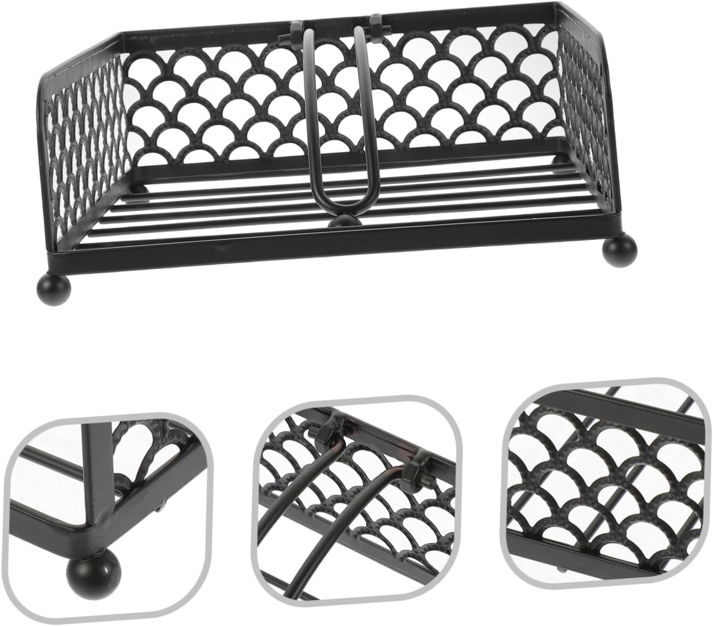 Package List 3 x Tissue Holder Characteristics -Color:Black Retro Style Napkin Stand -Size:19.00X18.50X7.50cm/7.47X7.27X2.95in christmas napkin holder -Material:Iron flat napkin holder -Napkin Holder is for your party, banquet, restaurant, living room, hotel, KTV, bar, etc bar napkin holder. -Napkin Stand can be a housewarming present for your friends, they will be very happy. napkin holders for tables -With a strong structure, this paper towel holder is made of iron. In addition to being well protected against everyday wear and tear, the attractive surface will add a modern look dinner table decor. -Napkin holder has a simple design, but very in use, giving you a using experience metal holder. -Napkin Holder is a wonderful accessory for kitchen, hotel or other areas where paper towels are needed Table Napkin Holder Decor.Goods InformationCreative Napkin Stand It is an accessory in the kitchen, restaurant, dining room and other areas.Kitchen Napkin Rack In addition to being well resistant to daily wear and tear, the charming surface will add decoration to your room.dinner table decor This decorative hollow-out design Napkin Holder, manufactured with iron materials, and for a long term use