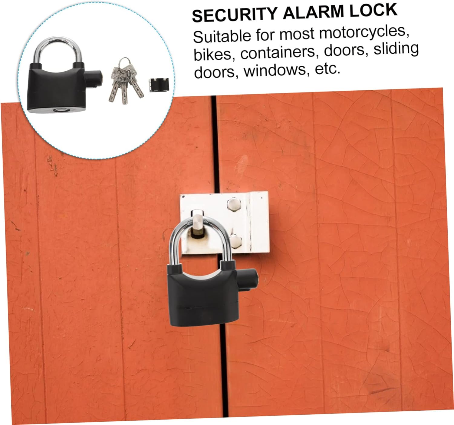 Package List 2 x Security Alarm Locks 6 x Keys 12 x Electronics Features - Color: Black security bicycle lock. - Material: Aluminum alloy u lock bike lock. - Size: About 10.00X9.50X3.20cm/3.93X3.73X1.26inch motorbike lock. -Product Info:Bicycle anti-theft lock - We can easily carry this anti-theft padlock because of its compact size design anti theft bike lock. - It is widely used to prevent theft of doors and windows, cabinets, bikes, motorcycles, etc bike locks heavy duty. - , you can buy this practical product at an scooter locks anti theft. - Made of durable aluminum alloy material, it alarm bike lock. - The package contains 6 keys, 2 padlocks and 12 button batteries for your convenience bicycle u-shaped lock.Goods Informationscooter lock anti theft It is a choice for you.cycle lock It has a longer service life than other locks.scooter chain lock This alarm lock has a that triggers an alarm that emits loud sound when locked or shaken, making it great for avoiding theft.Security Alarm Lock This padlock is made of aluminum alloy, it is and waterproof