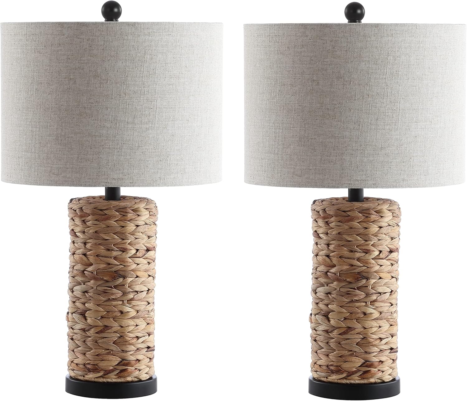 Prized for its beautiful warm tones of beige and hand-braided by skilled artisans, the cylinder bases of this pair of table lamps are completely wrapped in dried sea grass. Often used in baskets, sea grass makes a casual statement while adding texture to your surfaces. Finished in a matching finial and linen gray shade, it's an instant coastal classic.