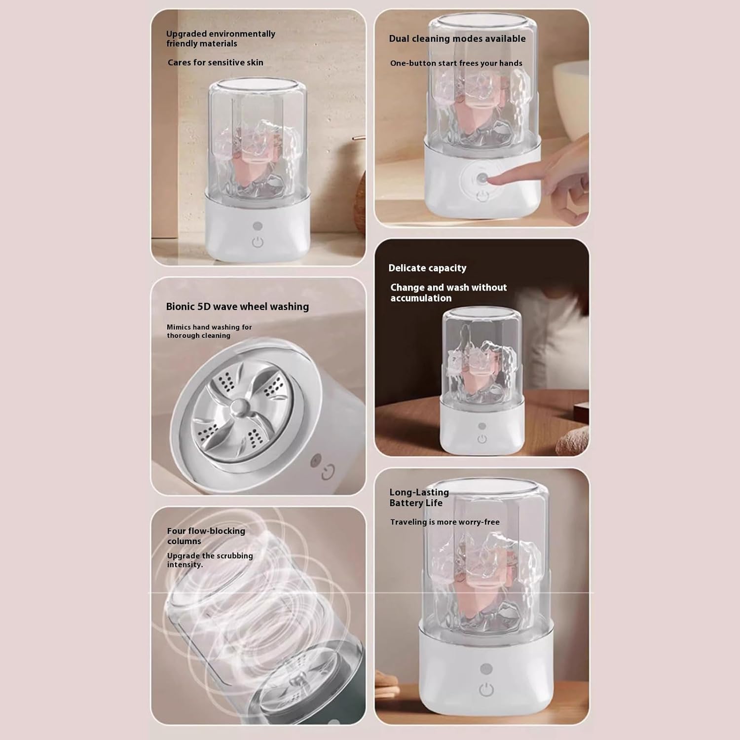 Portable Washing Machine Small Washer Deeply Small Laundry Socks Underwear Clothes Washer Features: cordless convenience with charging small washing machine, featuring 4000mah battery for portable laundry during travel, camping, or daily chores Its water flowing and rotating pulsator manual scrubbing to remove stubborn stain while protecting delicate fabrics, housed in ABS construction for long lasting use Ideal for outdoor, students, and apartment dwellers seeking garment care without occupying floor space Perfectly fits dorm rooms, or tight storage areas, offering quiet nighttime operational to maintain peaceful environments during laundry Enable effortless transport and storage, ensuring wherever adventure or daily life takes you Specifications: Component: ABS+PC Color: White / Green Type: Short Life / Long Life Size: Approx 13x13x20cm / 5.04x7.87inch Package Includes: 1Pc Underwear Washing Machine Note: 1.Please allow 1-2cm errors due to manual measurement, making sure that you not mind before order 2.Due to the differences between different monitors, the picture may not reflect the actual of the item