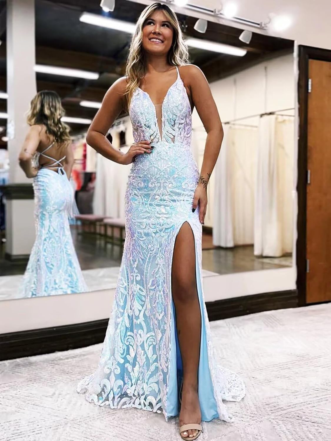 Welcome to Our Store Description:You Can Find Bridesmaid Dresses,Mother of the bride Dresses,Wedding Party,Prom Dress,Formal Evening Gowns,Homecoming Dresses,Cocktail Party Dress,Engagement Marine Corps Ball Or Prom,Formal Occasions.For This Year's Party,We Can Offer Not Only Standard Size Dresses,But Also Customize Dress Material:Sparkly Sequin Neckline:Spaghetti Straps Feature:Mermaid Built-in Bra:Yes Occasion:Wedding,Bridesmaid,Prom,Formal Evening,Ball,Engagement,Wedding Guest Dress,Cocktail Party,Homecoming,special occasion. Note: 1.The real color of the item may be slightly different from the pictures shown on website caused by many factors, such as brightness of your monitor and light brightness. 2.Washing: Dry Clean /Hand wash cold/Don't bleach/ Air Dry,Iron on low heat if needed. Size Chart (just for reference): US 2:bust:32.5",waist:25.5",hips:35.75", US 4:bust:33.5",waist:26.5",hips:36.75", US 6:bust:34.5",waist:27.5",hips:37.75", US 8:bust:35.5",waist:28.5",hips:38.75", US 10:bust:36.5",waist:29.5",hips:39.75", US 12:bust:38.0",waist:31.0",hips:41.25", US 14:bust:39.5",waist:32.5",hips:42.75", US 16:bust:41.0",waist: 34.0",hips:44.25", Size16W:Bust=43";Waist=36.25";Hips=45.5"; Size18W:Bust=45";Waist=38.5";Hips=47.5"; Size20W:Bust=47";Waist=40.75";Hips=49.5"; Size22W:bust=49";Waist=43"; hips=51.5"; Size24W:bust=51";Waist=45.25";hips=53.5"; If you need custom size,please send your following measurements to us by Amazon messages. 1.Bust _____Inch(cm) 2.Waist _____Inch(cm) 3.Hips _____Inch(cm) 4.Hollow to Hem(without shoes) _____Inch(cm) 5.Height(without shoes) _____Inch(cm) 6.Heels _____Inch(cm)