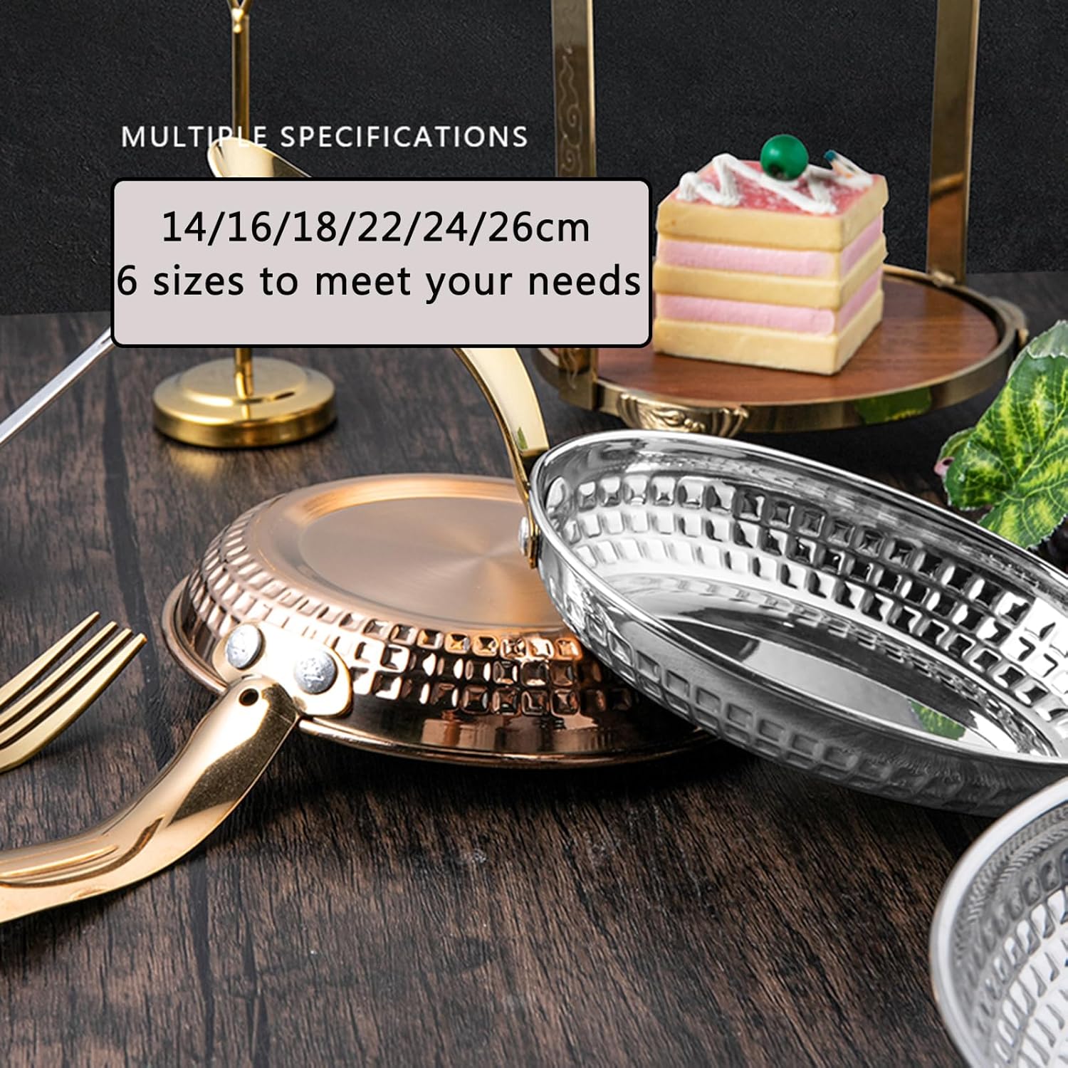This Rounded Platter is an excellent idea to enhance a wonderfully prepared meal at home. It also fits in perfectly for any occasion and is great for crowd-sized entertaining. This versatile all-purpose stainless steel platter tray is perfectly designed for party/catering serving of assorted cold dishes, tabletop serving and barbecue (BBQ) grilling of meat, fish and vegetables. Platter is made of high quality stainless steel, rust-proof, stain-proof and crash-proof. They will last for years to come of great usage. Raised / Elevated Rim helps to prevent slip and spilling. You can use them practically anywhere, indoors or outdoors for camping, picnic or to serve your favorite guest. Product Name: Stainless Steel Dinner Plates Product Material: Stainless Steel Applicable: home/restaurant/commercial, etc Size: 14cm: calibre: 14cm/5.5inch, Total length with handle: 23.5cm/9.25inch, Height: 2cm/0.78inch 16cm: calibre: 16.5cm/6.49inch, Total length with handle: 25.5cm/10.03inch, Height: 2.5cm/0.98inch 18cm: calibre: 18.5cm/7.28inch, Total length with handle: 29cm/11.41inch, Height: 3.5cm/1.37inch 20cm: calibre: 20cm/7.87inch, Total length with handle: 31cm/12.2inch, Height: 3.5cm/1.37inch 22cm: calibre: 22.5cm/8.85inch, Total length with handle: 34.5cm/13.58inch, Height: 3.5cm/1.37inch 24cm: calibre: 24.5cm/9.64inch, Total length with handle: 36.5cm/14.37inch, Height: 3.5cm/1.37inch Product List: Stainless Steel Dinner Plates Pot x1 Note: Sizes are measured by hand, please allow for slight variations. Any problem, please send me an email, I will deal with it within 24 hours.